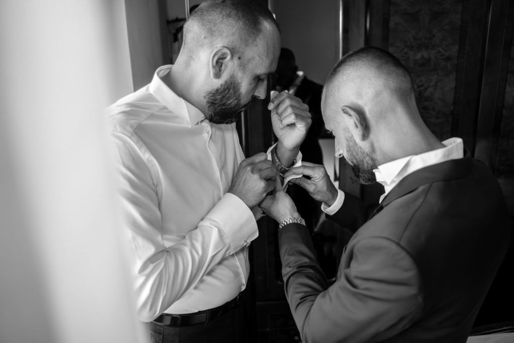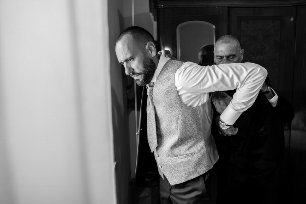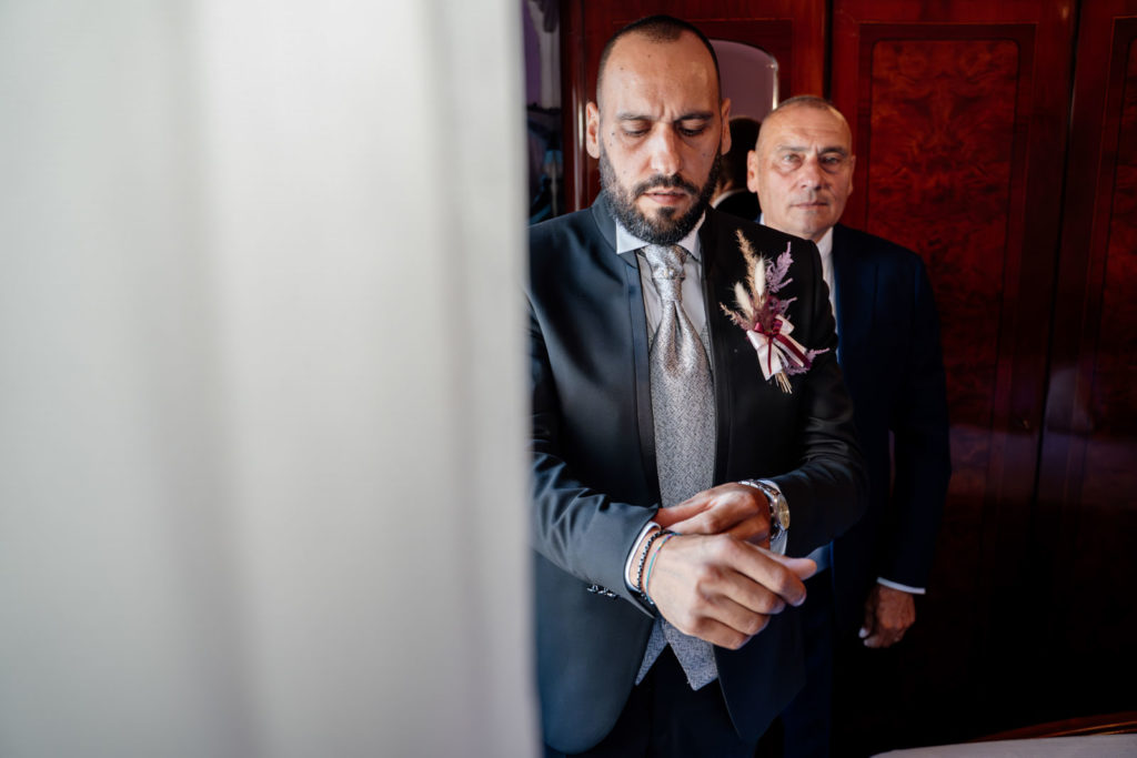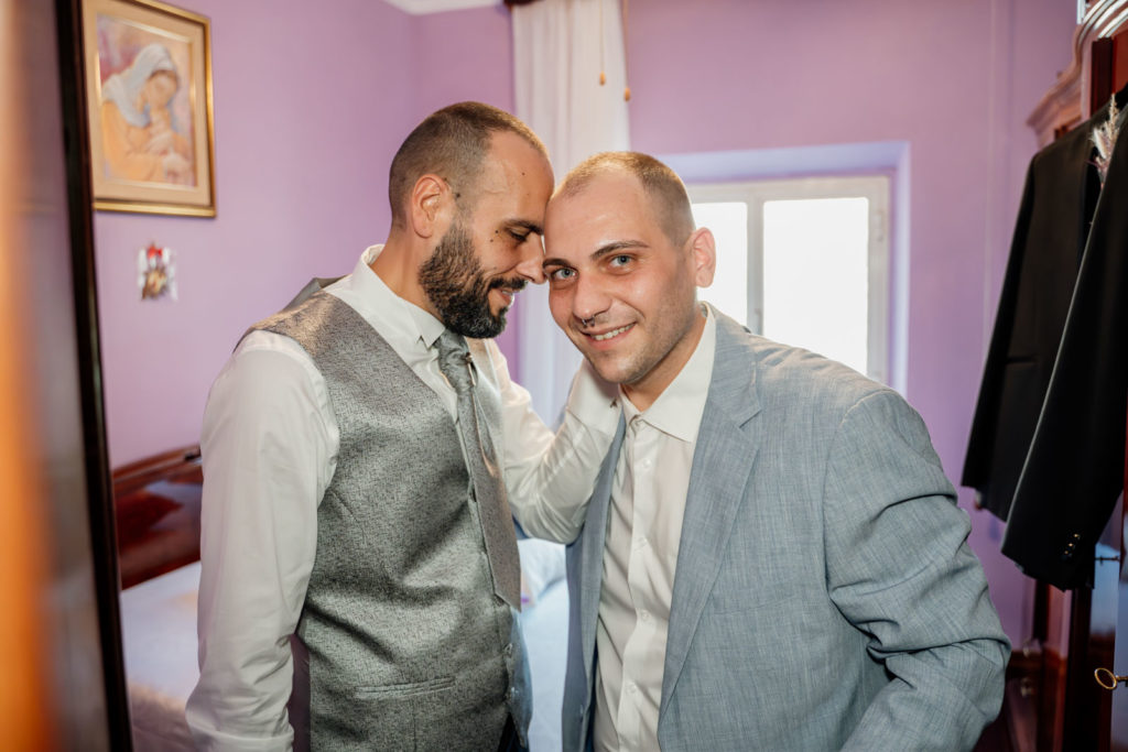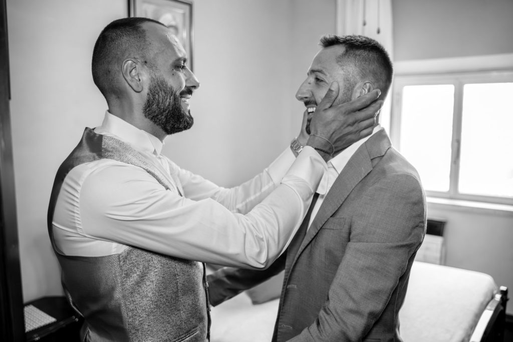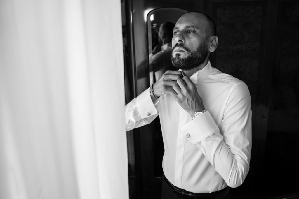 I preparativi di Francesco, lo sposo, sono stati intensi e soprattutto pieni di emozione; insieme alla sua famiglia, a suo fratello e ai suoi amici, la sua preparazione è stata come fare un salto nel suo passato, rivivendo i legami, gli istanti e soprattutto le emozioni che hanno sempre contraddistinto la sua anima; perché divertirsi è anche emozionarsi e, con essi, emozionare chi ti sta vicino da sempre ed è proprio questa la magia di quel preciso momento, assaporare ciò che è stato, con la consapevolezza di vivere la bellezza del momento, la bellezza di un legame, la bellezza del proprio essere.