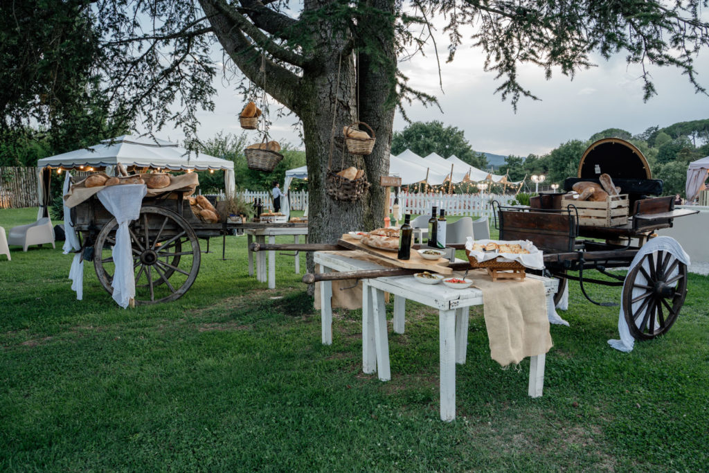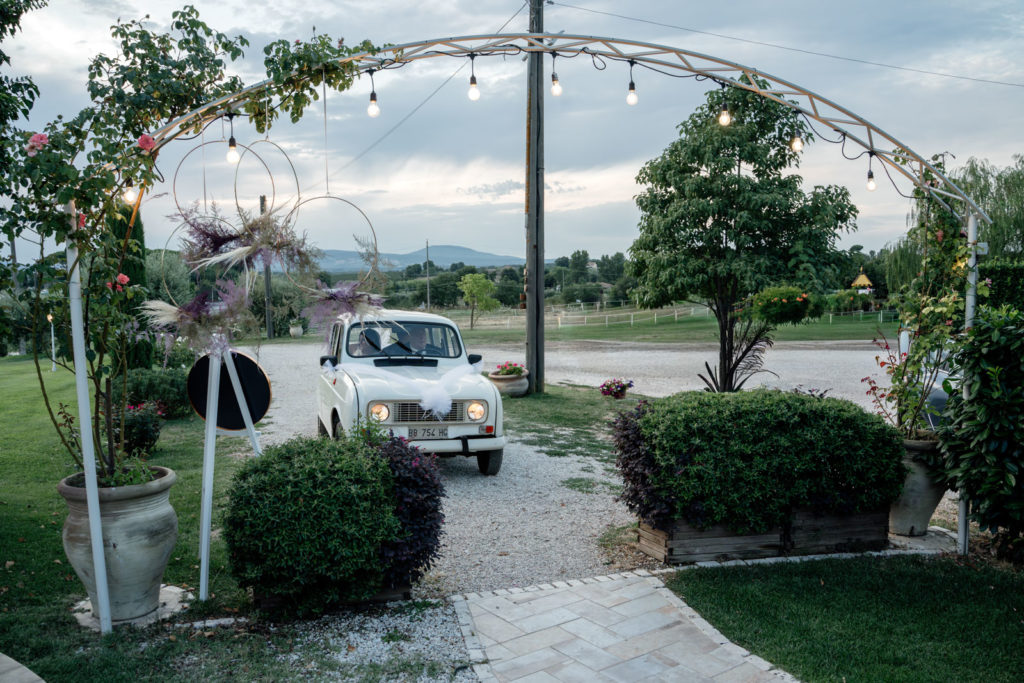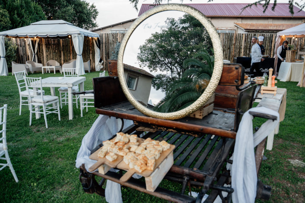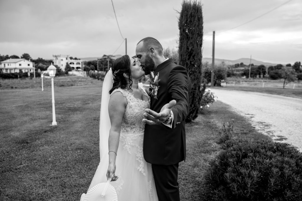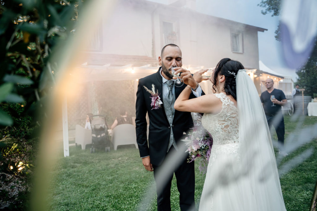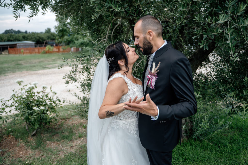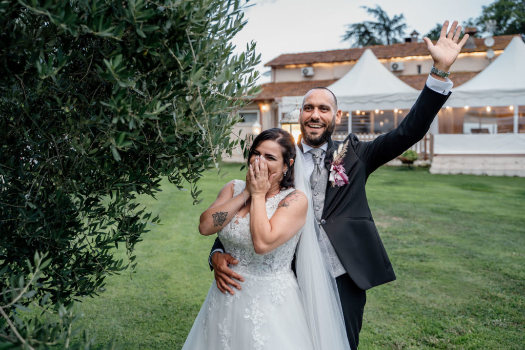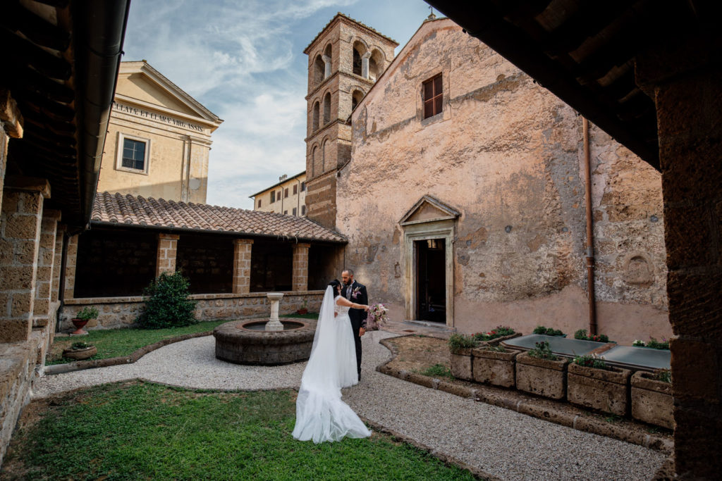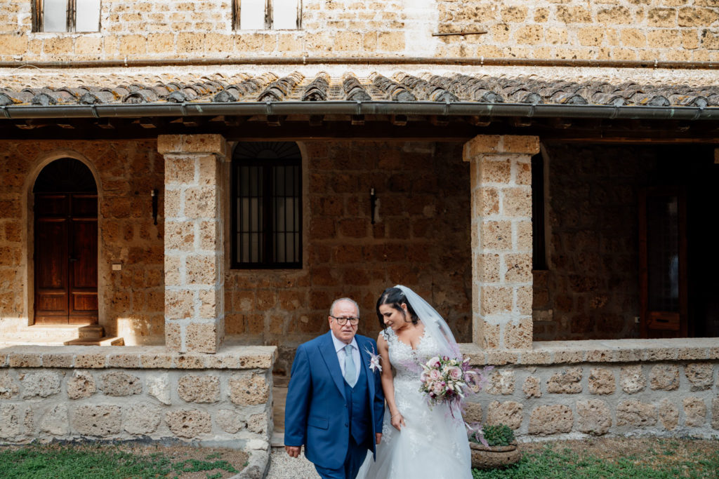Con un sole estivo che giungeva al tramonto, il Monte Soratte sullo sfondo, le fotografie realizzate in esterna a Civita Castellana, con sfondo uno dei simboli di Civita Castellana, il Forte San Gallo (Museo dell’Agro Falisco), sono state per gli sposi un vero momento di totale intimità da passare completamente in solitaria, prima di raggiungere e continuare a celebrare la loro festa a Colle Salomonio.