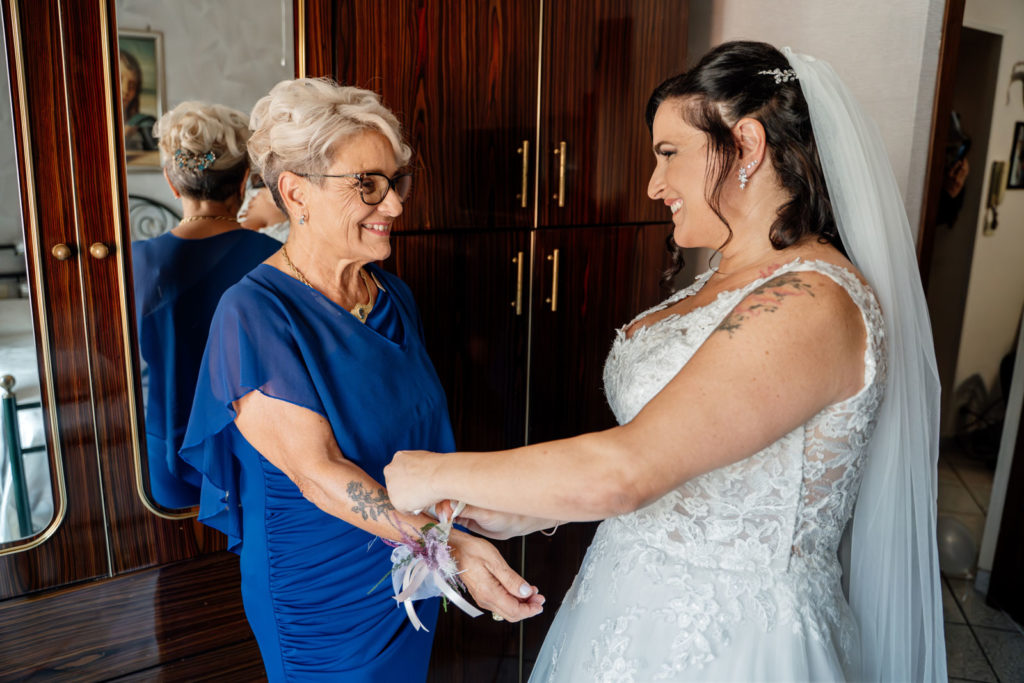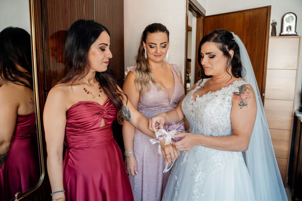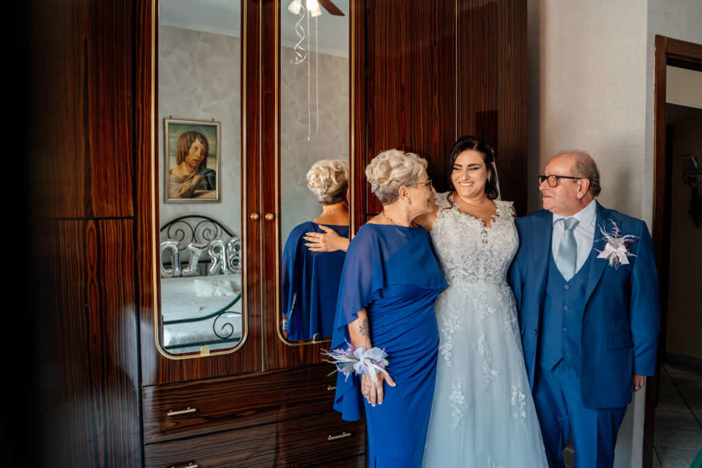 E i preparativi di Stefania, la sposa, sono stati davvero molto intimi e la presenza delle sue più care amiche, nonché damigelle, ha reso quei momenti di un’intensità davvero magnifica. Perché vivere quei momenti con le persone a te più care non solo donerà dei ricordi ancora più forti al tuo matrimonio, ma generà dei ricordi, unici e indelebili, che ti faranno emozionare, ridere e soprattutto divertire ogni volta che rivedrai quelle fotografie. E, con l’arrivo dei suoi genitori, le emozioni esplodono.