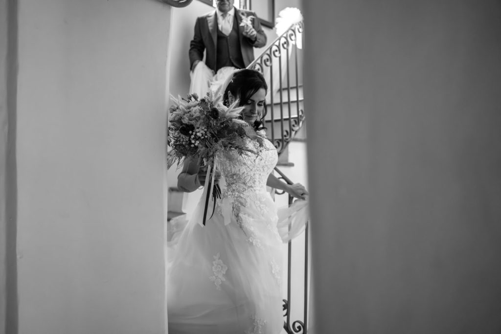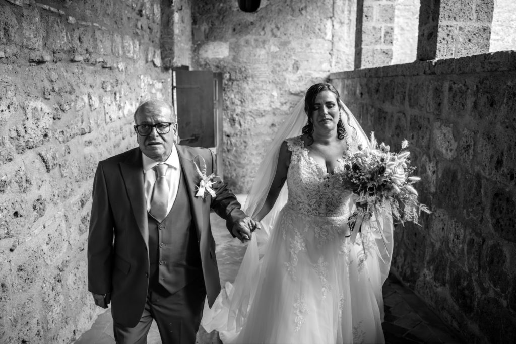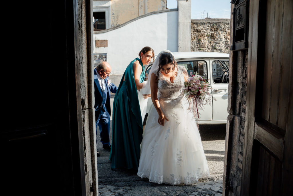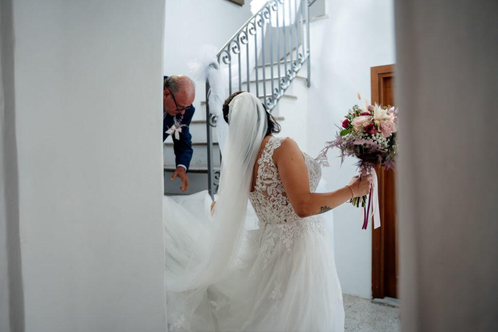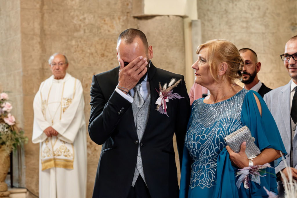 Ma prima di arrivare al raccontarti la cerimonia nella Chiesa romanica di Santa Maria del Carmine è importante partire dai preparativi degli sposi, dall’emozione, forte, di Francesco durante la sua vestizione e di quella che ha pervaso l’anima di Stefania, in un vero tripudio di sensazioni che ha alimentato il loro rito diffondendo tanta commozione tra i presenti.