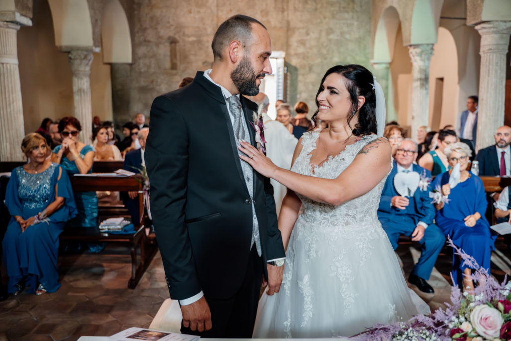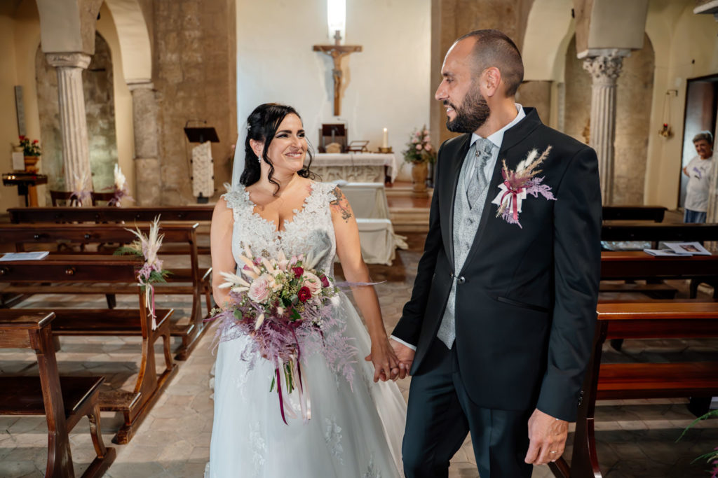 E quando gli sposi sono arrivati in chiesa, tutte le emozioni, tutte quelle sensazioni che si potevano percepire, sono esplose insieme a tutti gli invitati durante ogni parte della cerimonia; un vero atto di profonda unione si percepiva nell’aria e la chiesa ha svolto il “suo” ruolo di grande cassa di risonanza di per questo grande e infinito amore.
