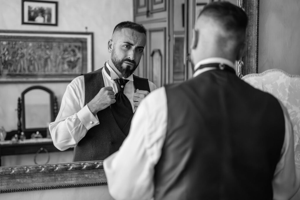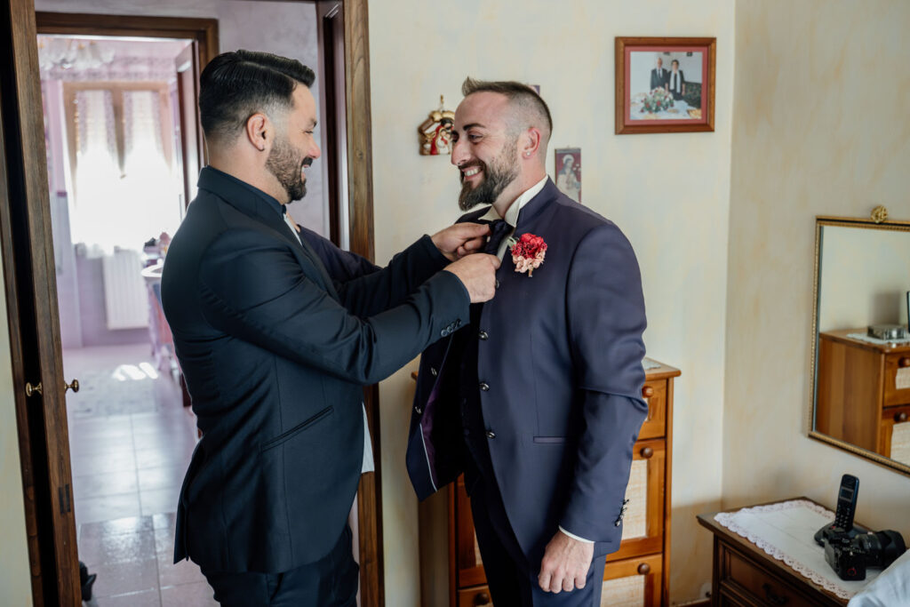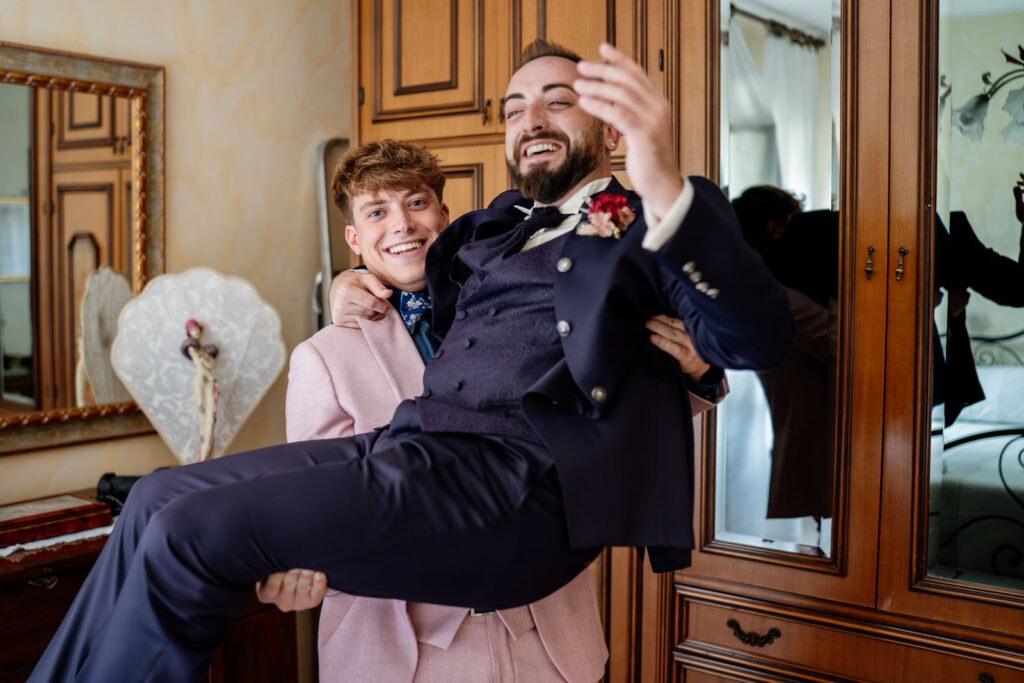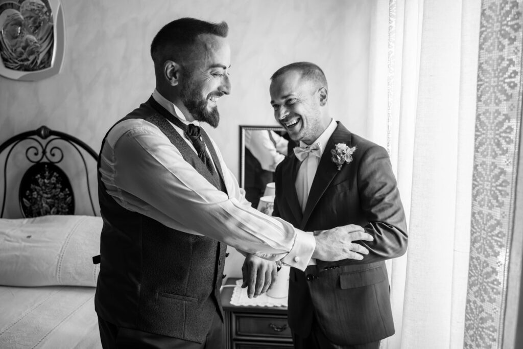 I preparativi di Niko, lo sposo, sono stati davvero molto rock e totalmente scatenati; insieme alla sua famiglia, a suo fratello e ai suoi amici, la sua preparazione è stata un vero susseguirsi di istanti incredibili e tutte le emozioni che sono state generate, tutte le battute, le risate, tutto è arrivato dal profondo dei loro cuori, così da realizzare un vero e proprio spettacolo; perché divertirsi è anche emozionarsi, lasciarsi totalmente andare, sentirsi totalmente liberi di vivere il qui e l’ora, così da costruire una storia emozionante, ma autentica.
