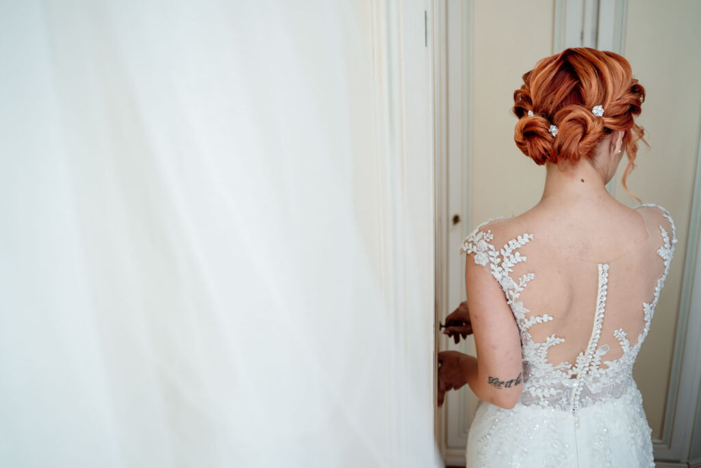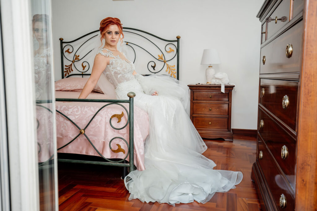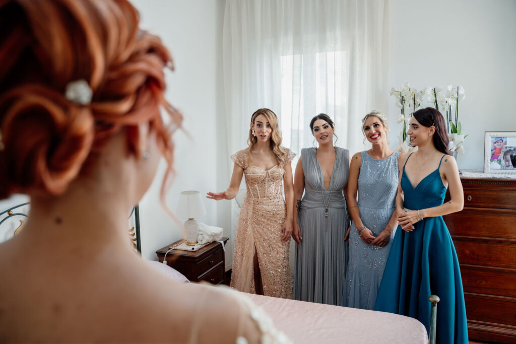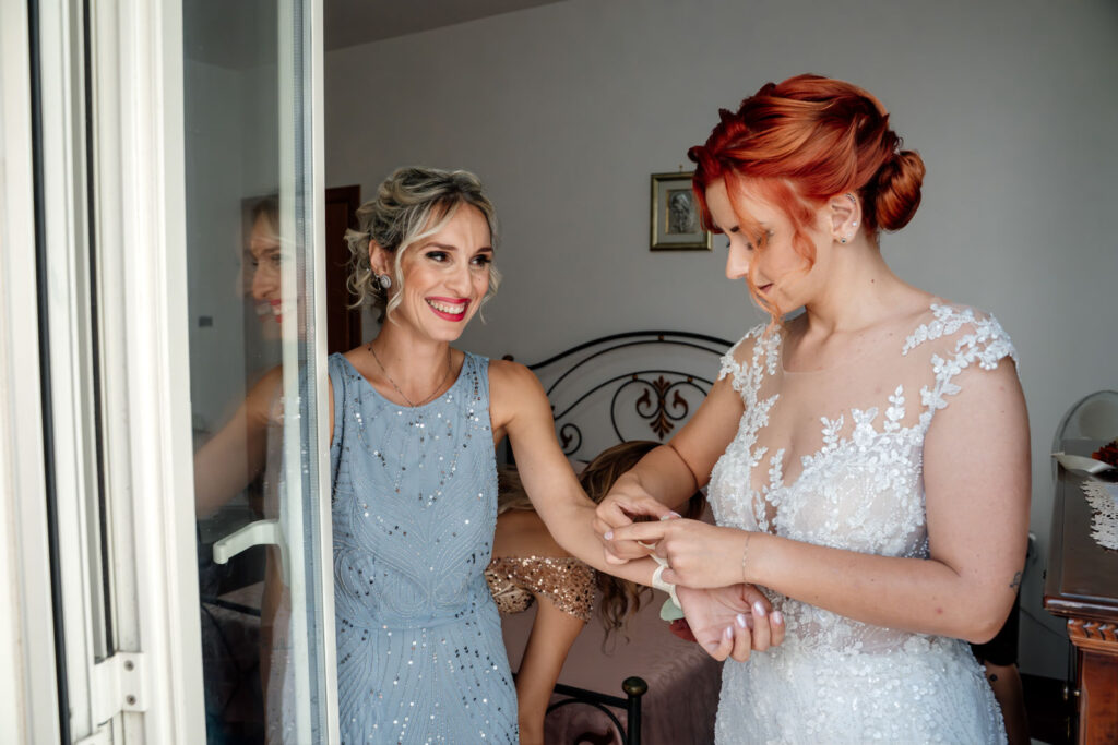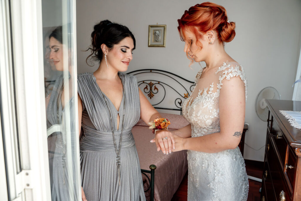 E i preparativi di Stefania, la sposa, sono stati davvero molto intimi, delicati, vividi e la presenza delle sue sorelle, nonché damigelle, ha profondamente contribuito a generare delle forti emozioni. Perché vivere quei momenti con le persone a te più care non solo donerà dei ricordi ancora più forti al tuo matrimonio, ma genererà dei ricordi così vivi, così unici e autentici, che non solo ti faranno emozionare, ridere e soprattutto divertire ogni volta che rivedrai quelle fotografie, ma ti trascineranno ogni volta in quel tempo come se fosse sempre sospeso tra una realtà e l’altra. E, con l’arrivo dei suoi genitori, le emozioni non si trattengono più ed esplodono come è giusto che sia.