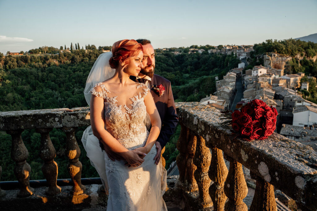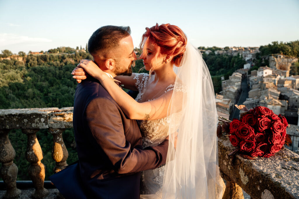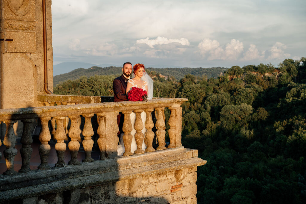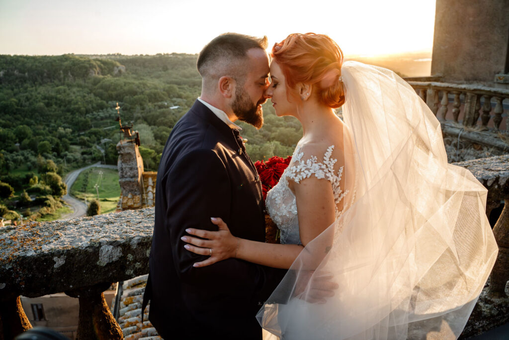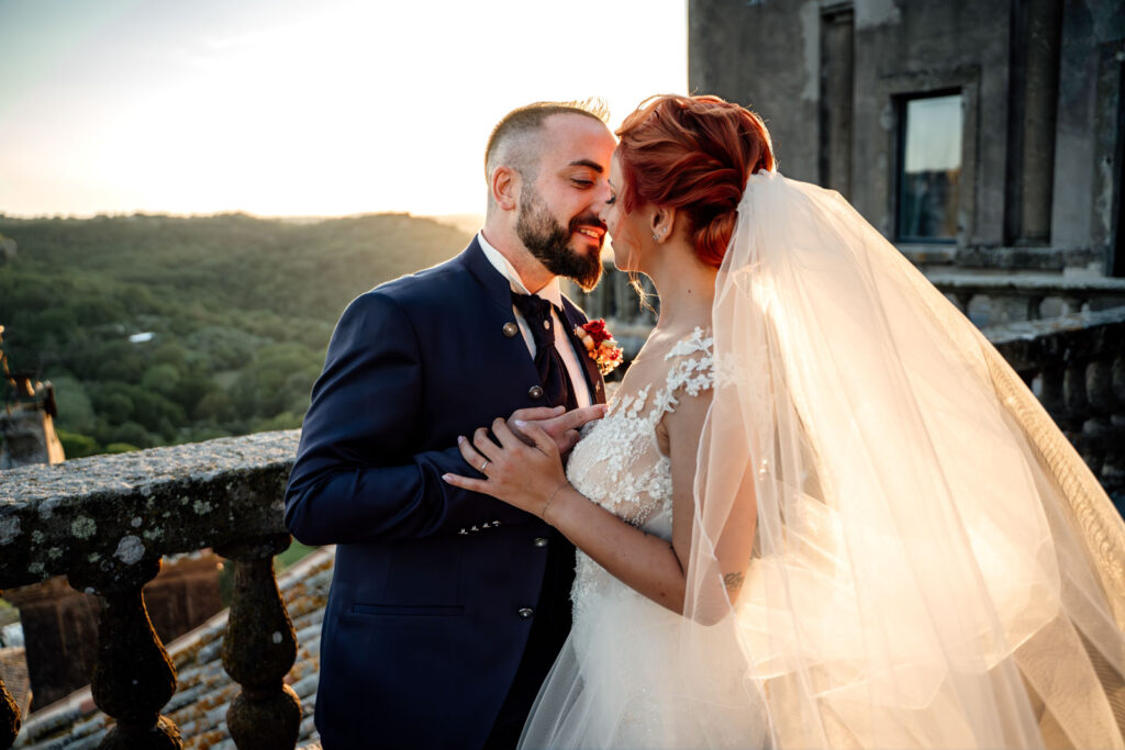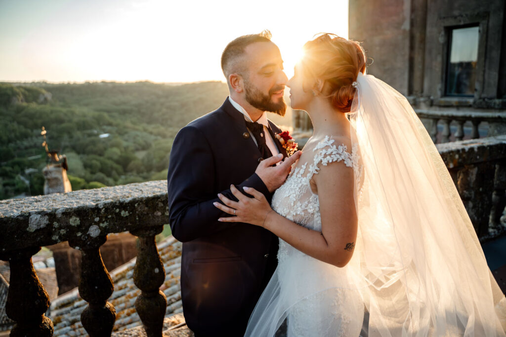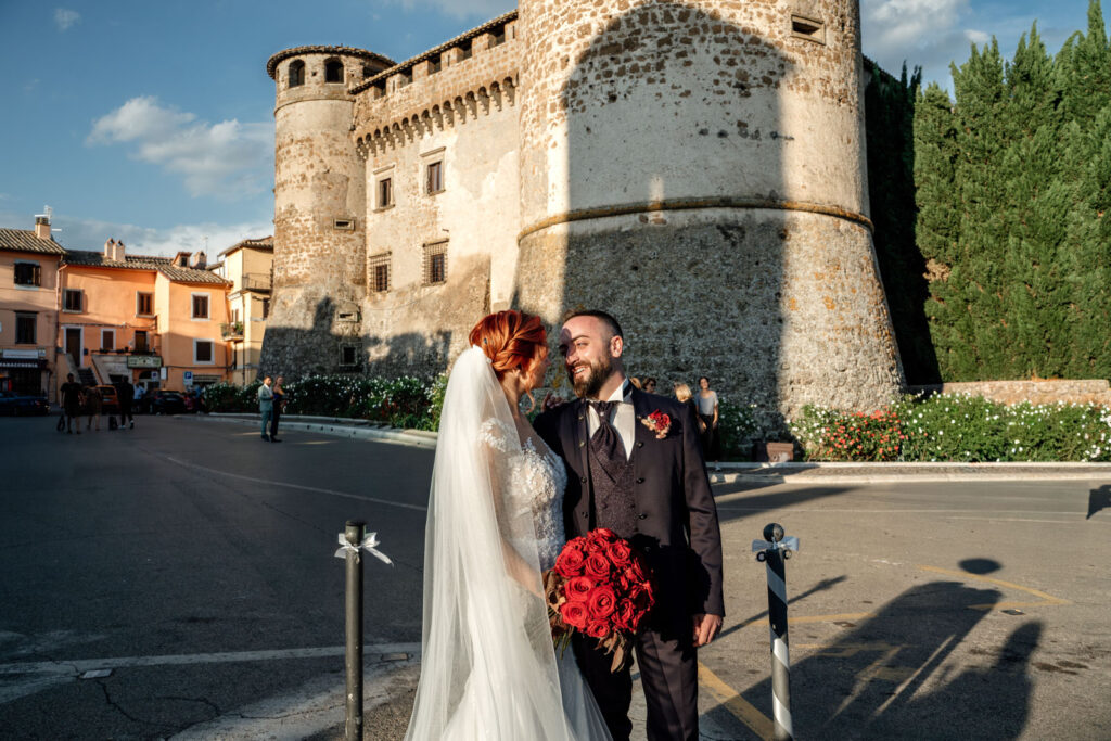 Con la luce pazzesca di un caldo tramonto d’Agosto, gli esterni di questi due sposi sono stati emozionanti, ma soprattutto, intimi. Il Castello Orsini di Vasanello prima e poi il centro storico di Bomarzo (con la bellissima e panoramica terrazza del suo palazzo Orsini), hanno donato a questi due stupendi ragazzi attimi così belli che li ricorderanno per il resto della loro vita.
