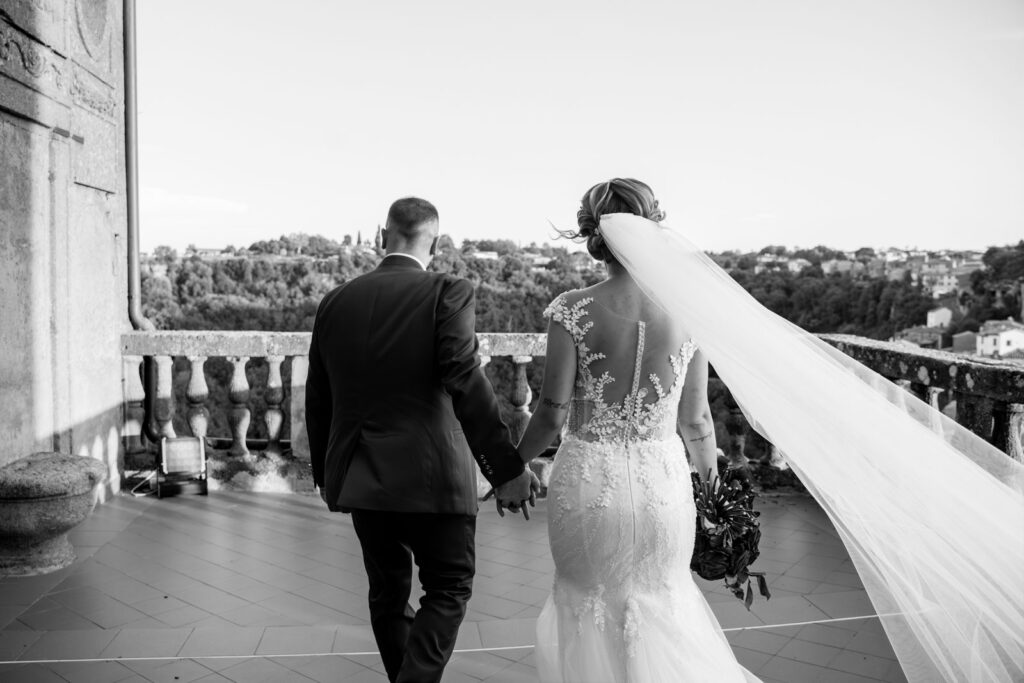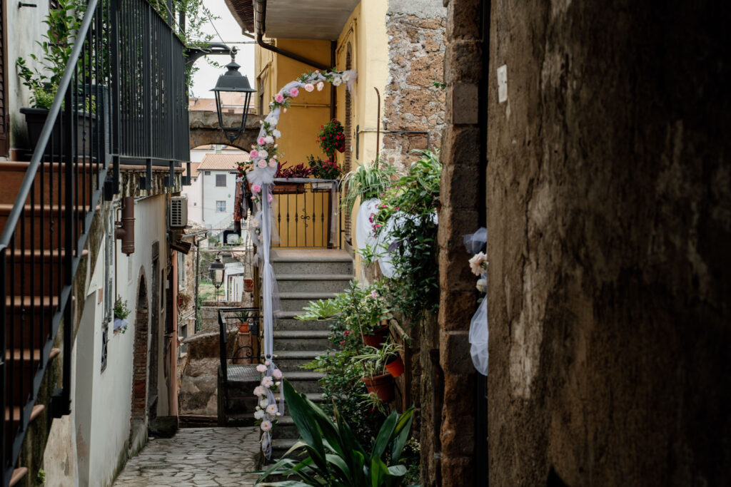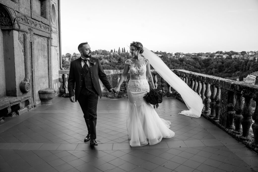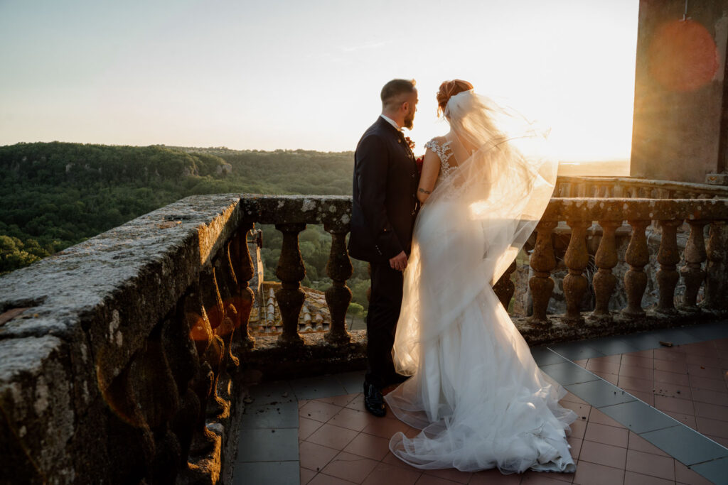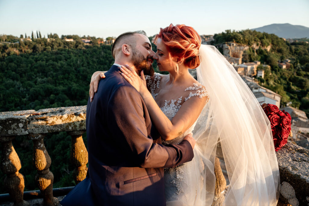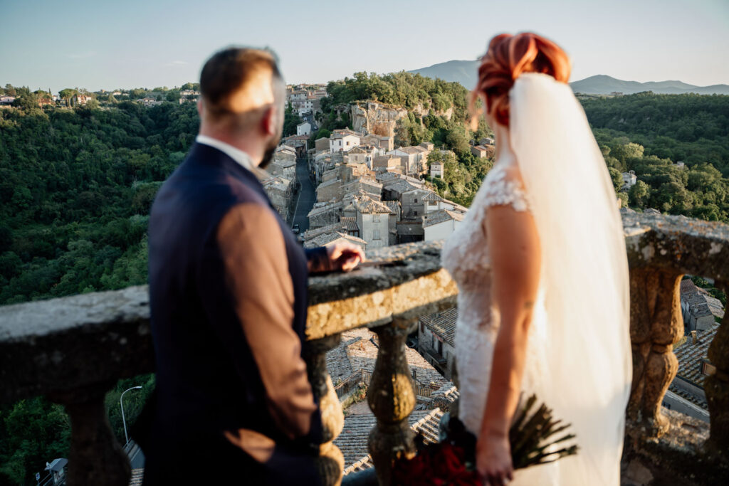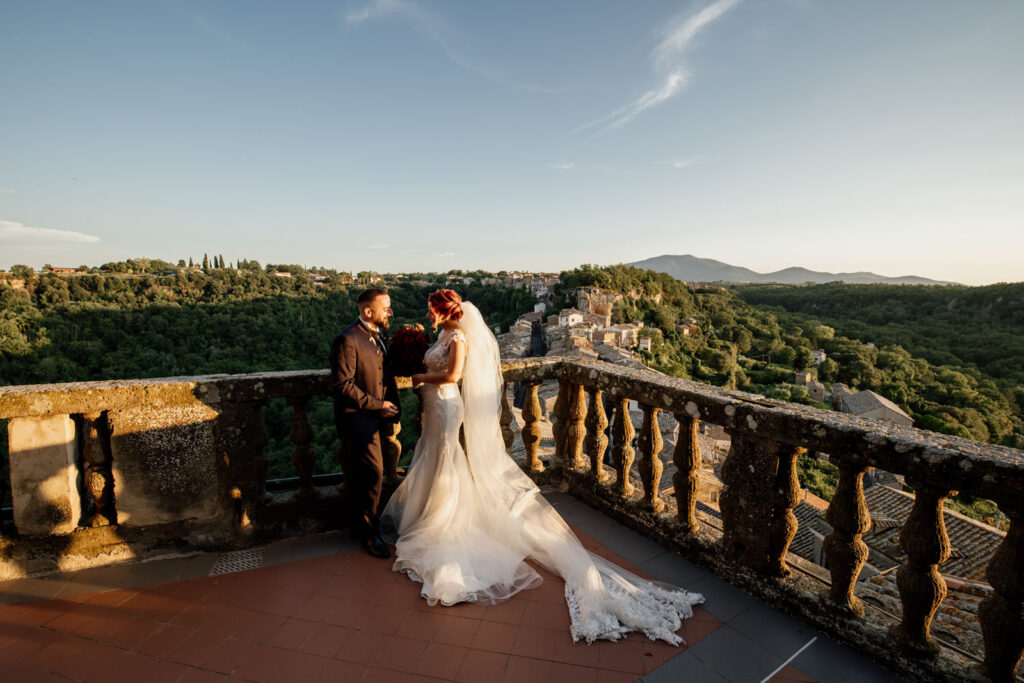 Con la luce pazzesca di un caldo tramonto d’Agosto, gli esterni di questi due sposi sono stati emozionanti, ma soprattutto, intimi. Il Castello Orsini di Vasanello prima e poi il centro storico di Bomarzo (con la bellissima e panoramica terrazza del suo palazzo Orsini), hanno donato a questi due stupendi ragazzi attimi così belli che li ricorderanno per il resto della loro vita.