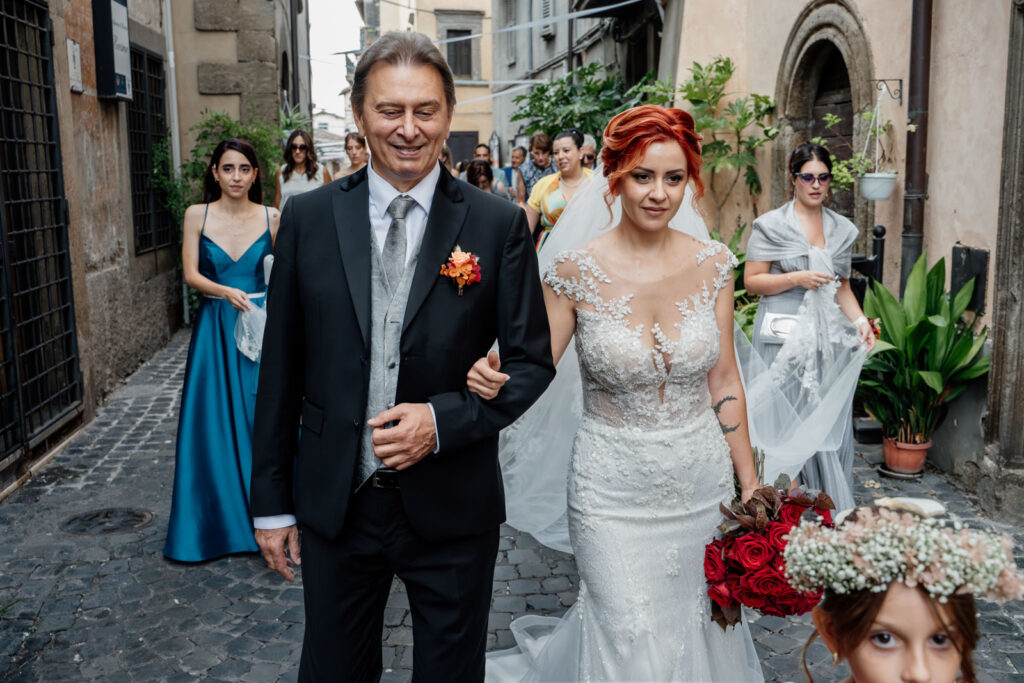 E l’arrivo degli sposi è stato un tripudio di emozioni; l’attesa dello sposo a metà della navata, la passeggiata con tutto il corteo nel centro storico di Vasanello della sposa (come da tradizione) insieme a suo padre e a tutta la sua famiglia, sono stati quei momenti, quegli istanti che non si potranno mai dimenticare; per la loro bellezza, per la loro semplicità, per il loro significato.