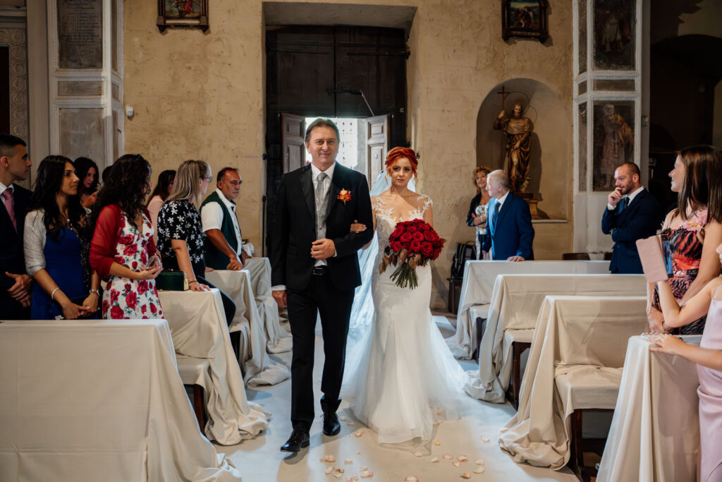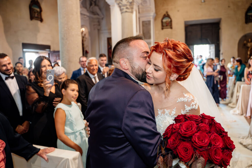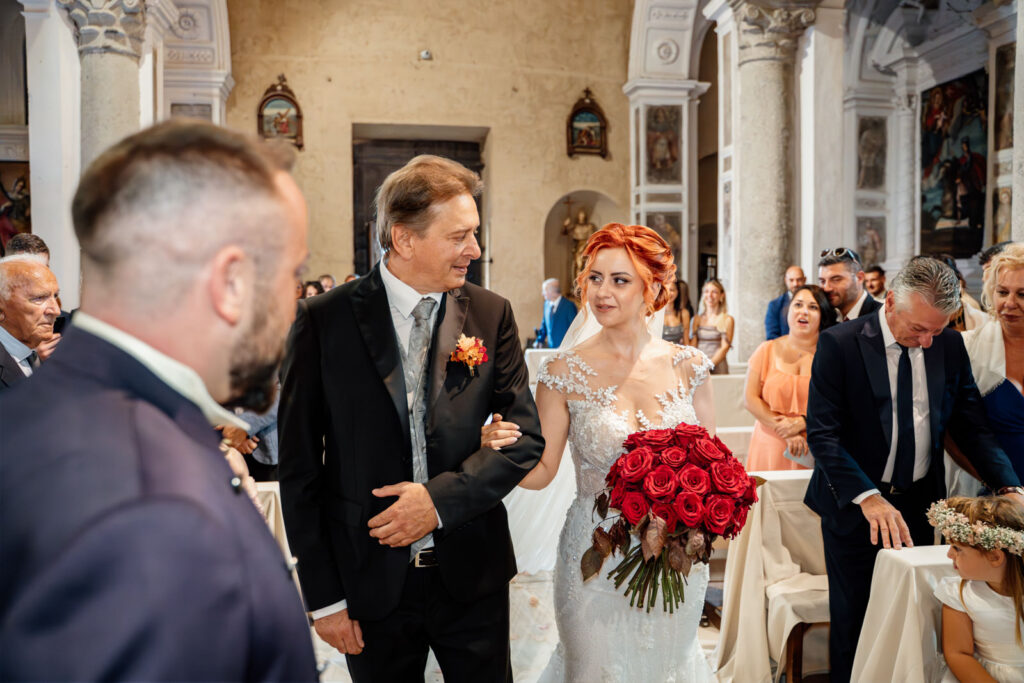 E quando gli sposi si sono incontrati in chiesa, tutte le emozioni, tutte quelle sensazioni che si potevano percepire, sono totalmente esplose! L’emozione dello sposo è stata incredibile, ma anche quella della sposa! Insieme a tutti gli invitati, gli sposi sono giunti all’altare per andare a consacrare, dinanzi al parroco della chiesa, la loro unione; un unione vera, sentita, circondata da tutto l’amore dei presenti alla cerimonia.