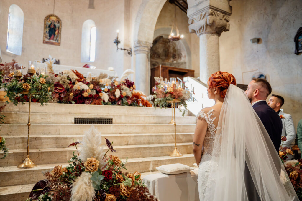 Raccontare, poi, un matrimonio in un’antica chiesa romanica è qualcosa di così emozionante che non si può semplicemente descrivere attraverso le parole, ma bisogna viverlo direttamente sulla propria pelle oppure anche attraverso le fotografie realizzate in questi magici luoghi.