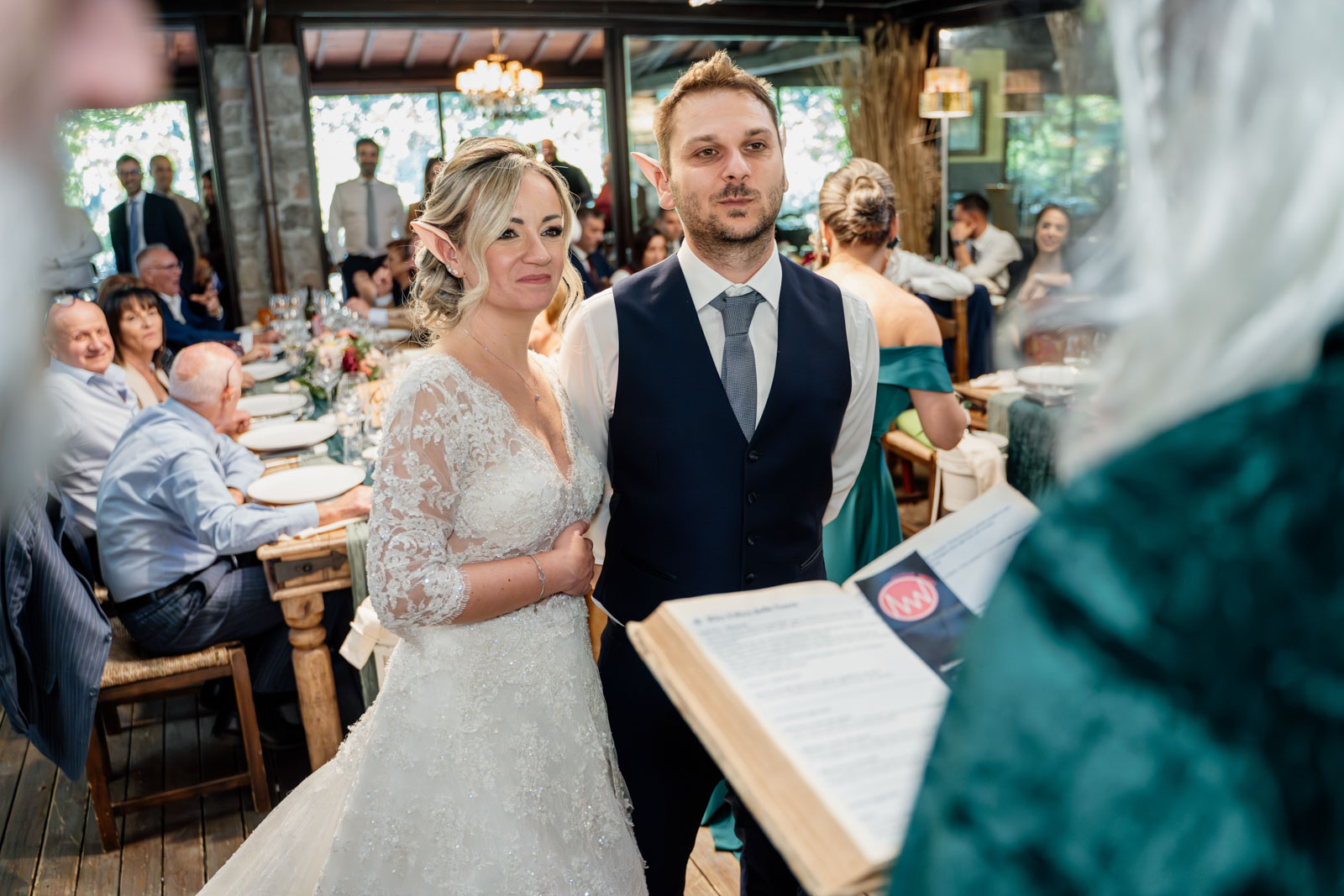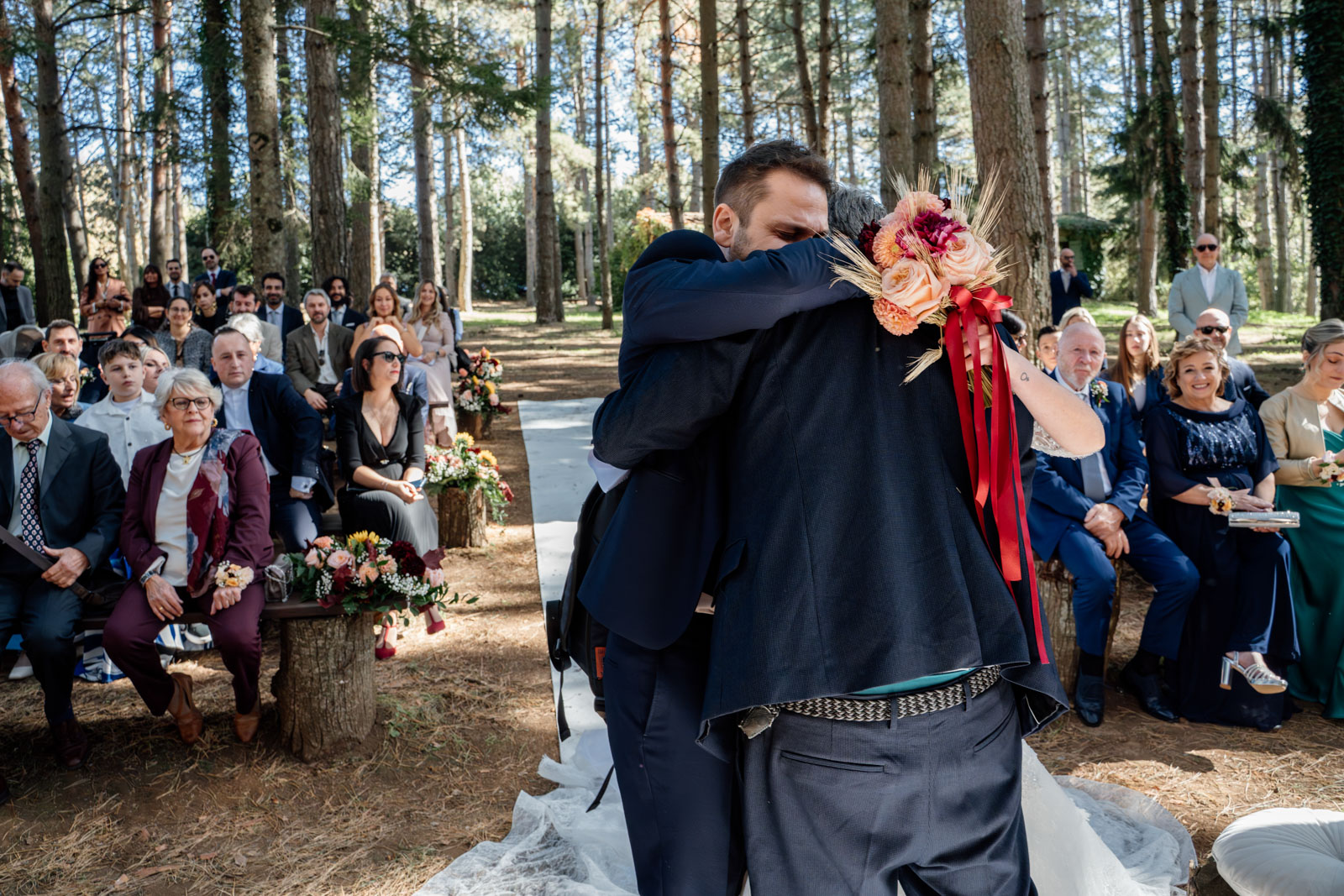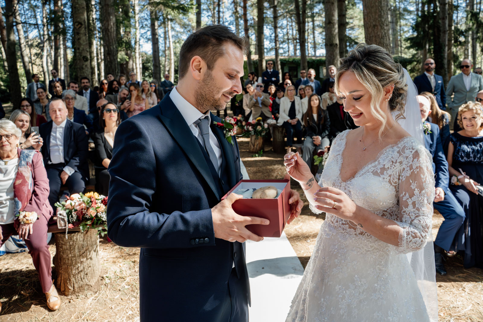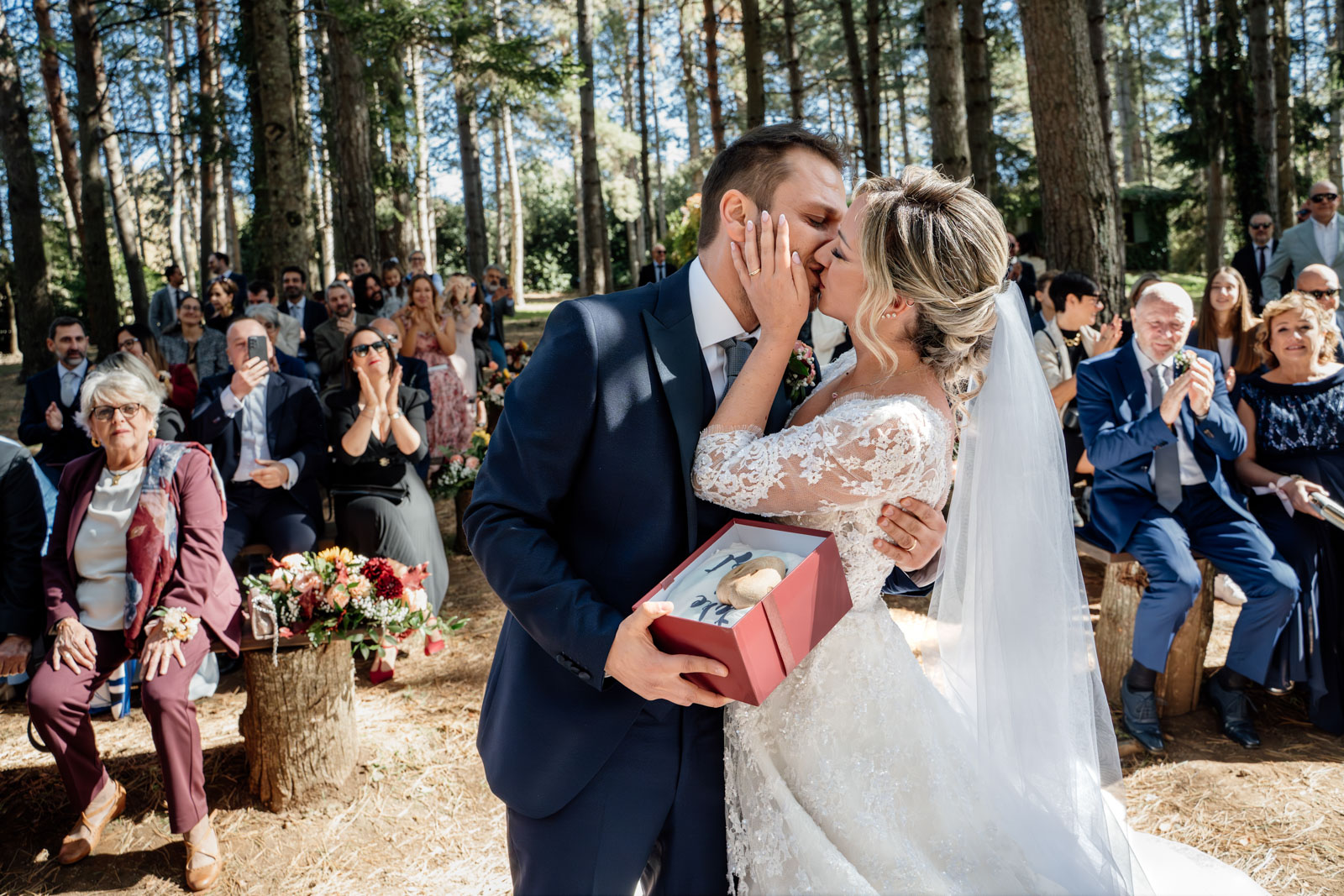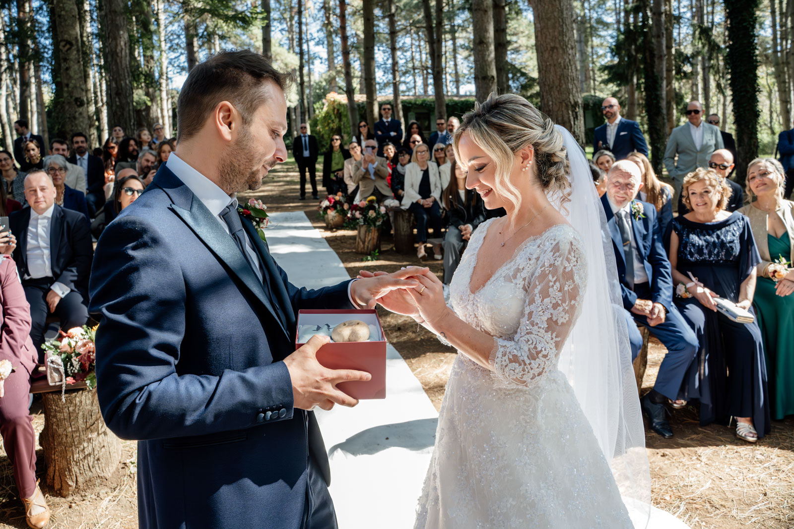 E il loro rito civile è stato meraviglioso! Osservare, durante il loro matrimonio al Parco dei Cimini, le emozioni degli sposi all’entrata e durante tutta la cerimonia (la cerimonia si è svolta all’interno di un fantastico bosco, a stretto contatto con la natura), come vedere quelle di tutti gli invitati e delle loro famiglie, è stato come assistere ad una vera opera d’arte emozionale; perché vivere in questo modo il matrimonio è come vivere in prima persona la storia d’amore di chi fotografi.