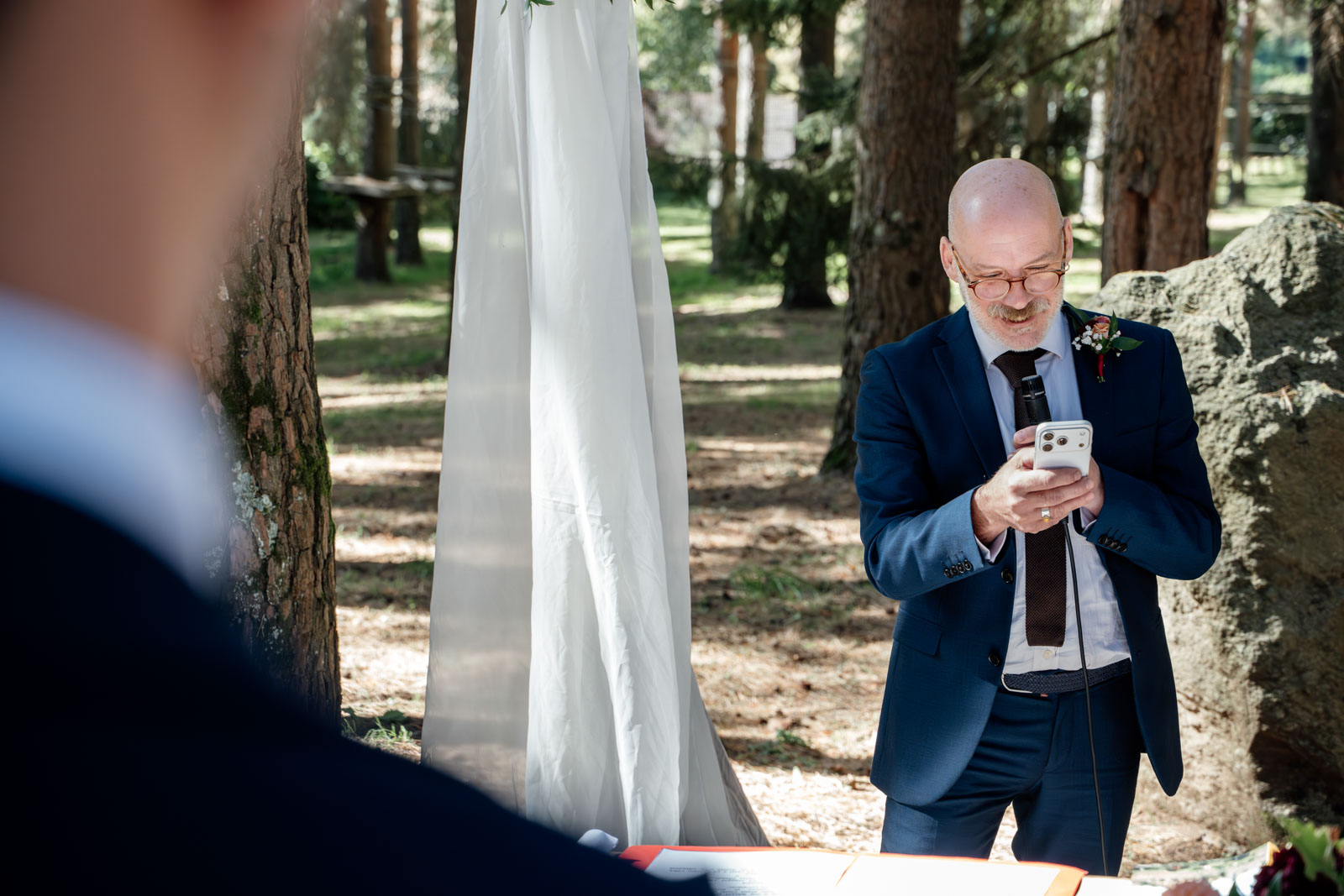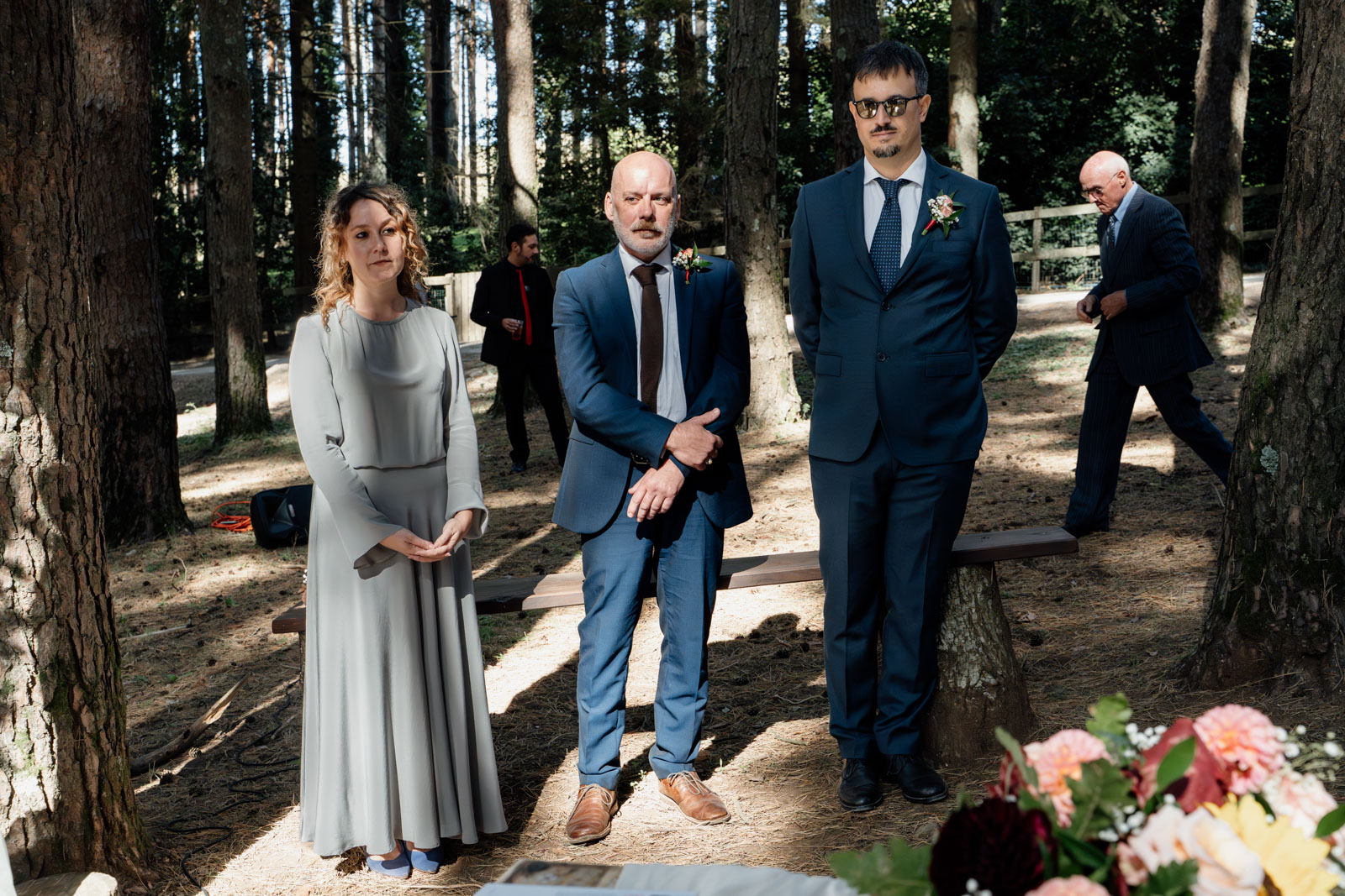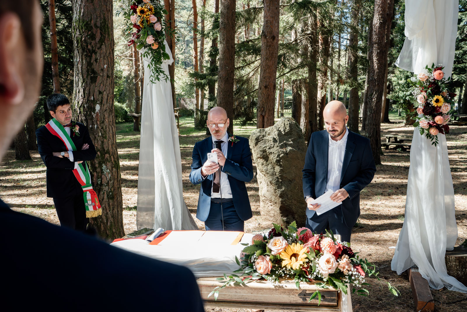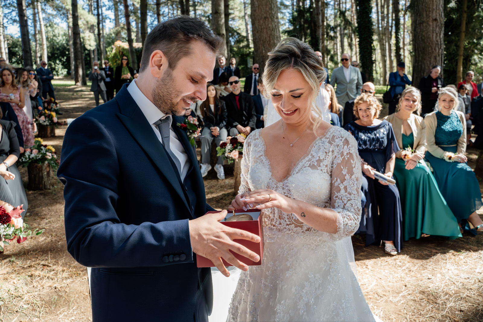 E il loro rito civile è stato meraviglioso! Osservare, durante il loro matrimonio al Parco dei Cimini, le emozioni degli sposi all’entrata e durante tutta la cerimonia (la cerimonia si è svolta all’interno di un fantastico bosco, a stretto contatto con la natura), come vedere quelle di tutti gli invitati e delle loro famiglie, è stato come assistere ad una vera opera d’arte emozionale; perché vivere in questo modo il matrimonio è come vivere in prima persona la storia d’amore di chi fotografi.