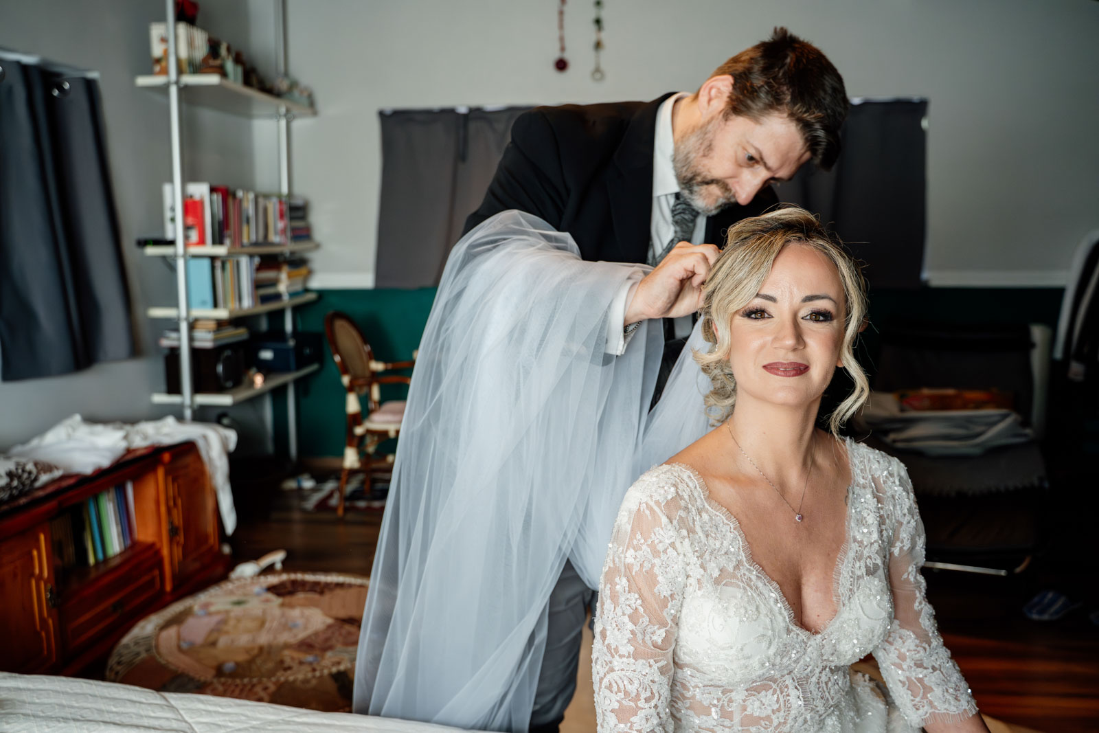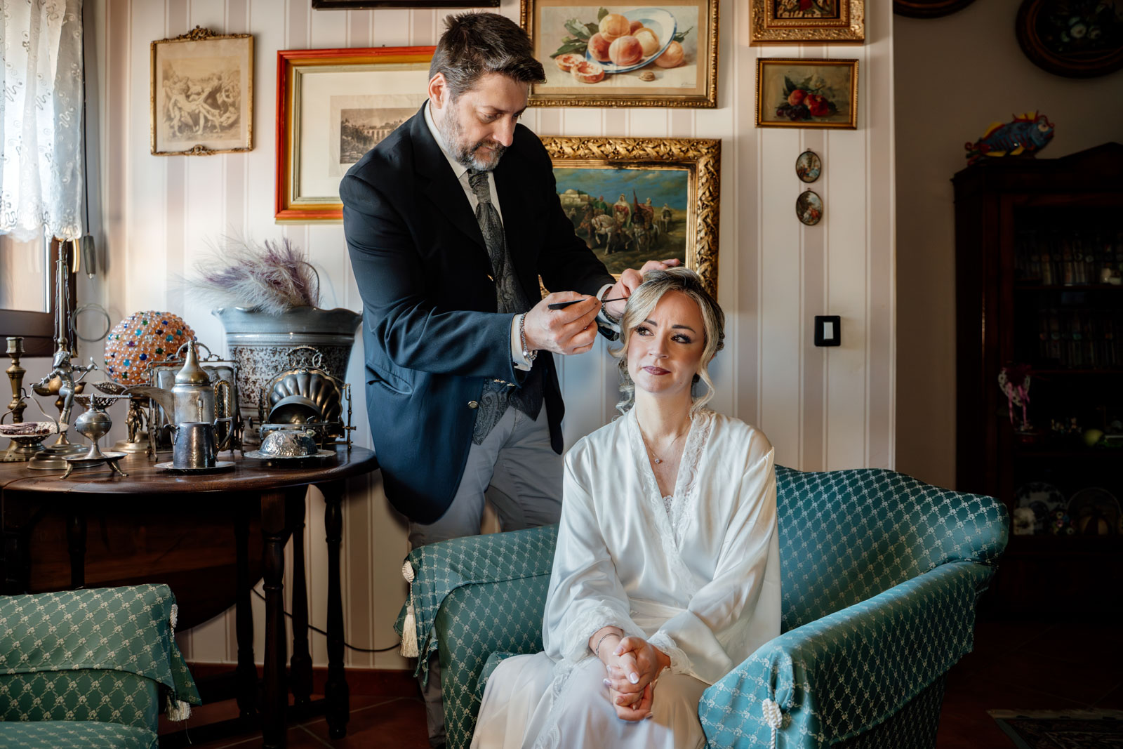 E la vestizione di Tamara, la sposa, a Faleri (frazione del comune di Fabrica di Roma e dove li vicino ci sono i resti dell’antica città romana di Falerii Novi, dove è anche situata l’abbazia cistercense di Santa Maria in Faleri) è stato un tripudio di emozioni arricchite dall’amicizia e da tutto l’amore della sua famiglia.