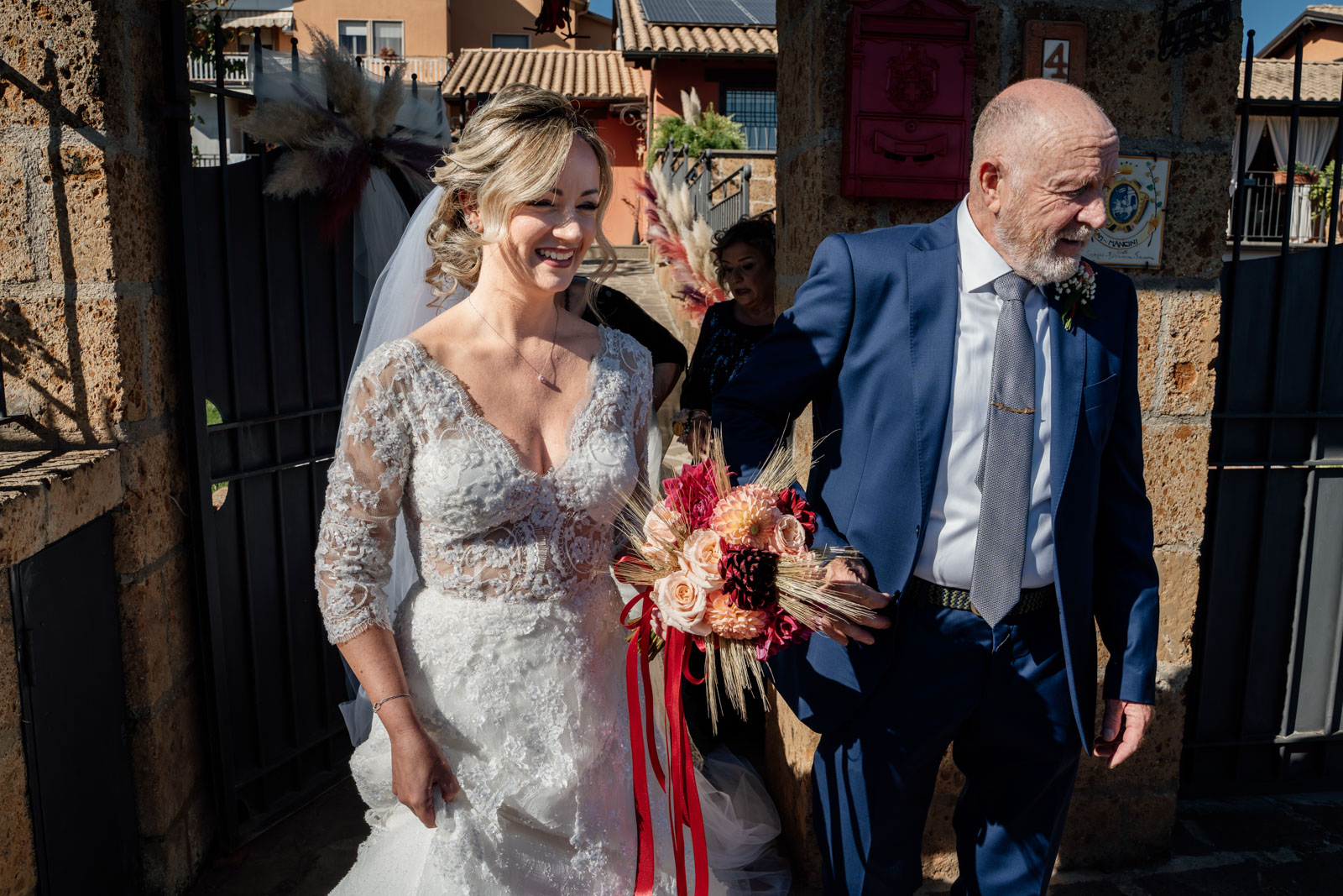 Il rapporto intimo con la famiglia, che ha fatto commuovere Tamara, suo padre (grande esploratore, sempre immerso nelle antichità della Tuscia, ma anche in giro per il mondo) e sua mamma; sua cugina, Barbara, della fantastica agenzia di viaggi Easy Italy Tour di Civita Castellana (se desideri viaggiare, chiedi a lei che è un vero e proprio portento per l’organizzazione dei viaggi) che l’ha aiutata ad indossare il vestito, sono stati momenti davvero toccanti ed incredibili, che hanno fatto accendere la fiamma della giornata.