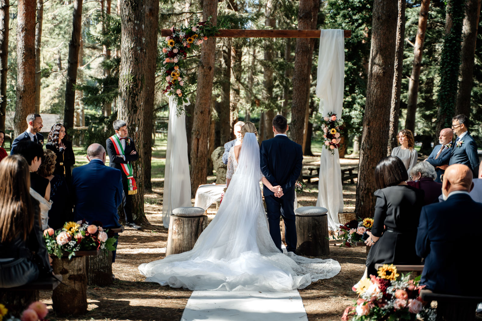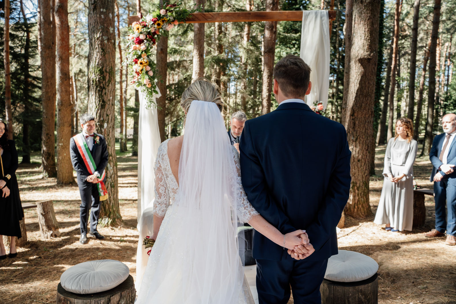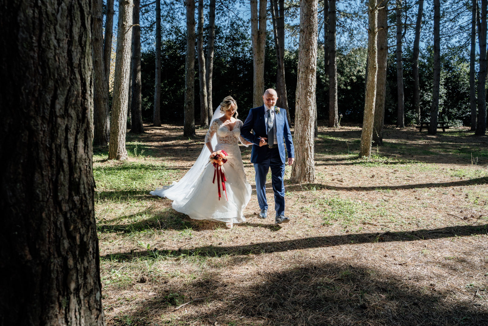 E dopo aver salutato amici, scambiato doni con loro, abbracciato sua mamma e suo papà, Tamara è partita per celebrare il suo matrimonio al Parco dei Cimini, dove il suo amato Andrea l’aspettava, con grande trepidazione e una forte emozione, per festeggiare il loro rito civile all’interno di un bellissimo bosco.